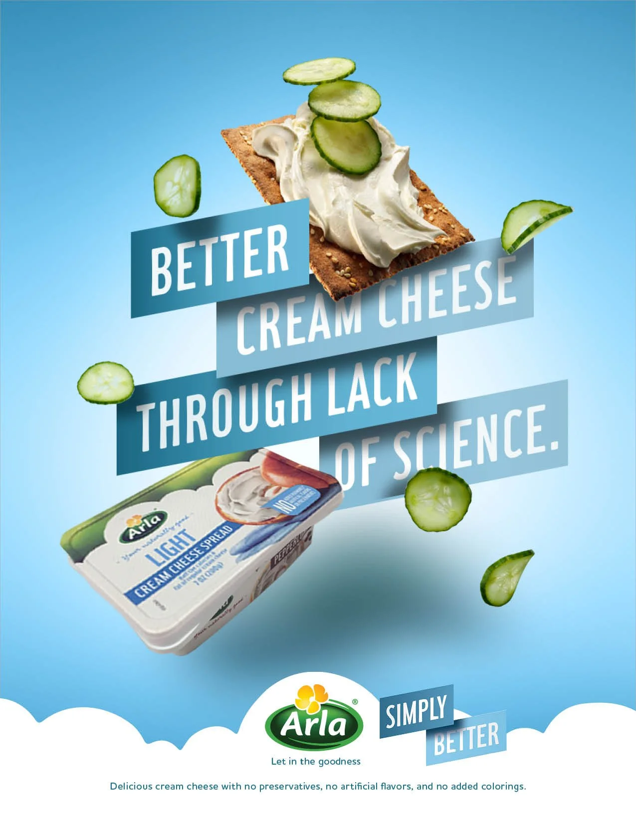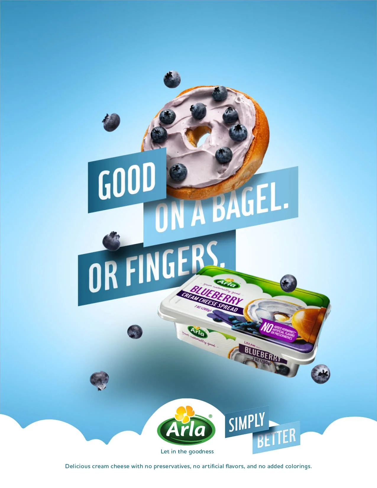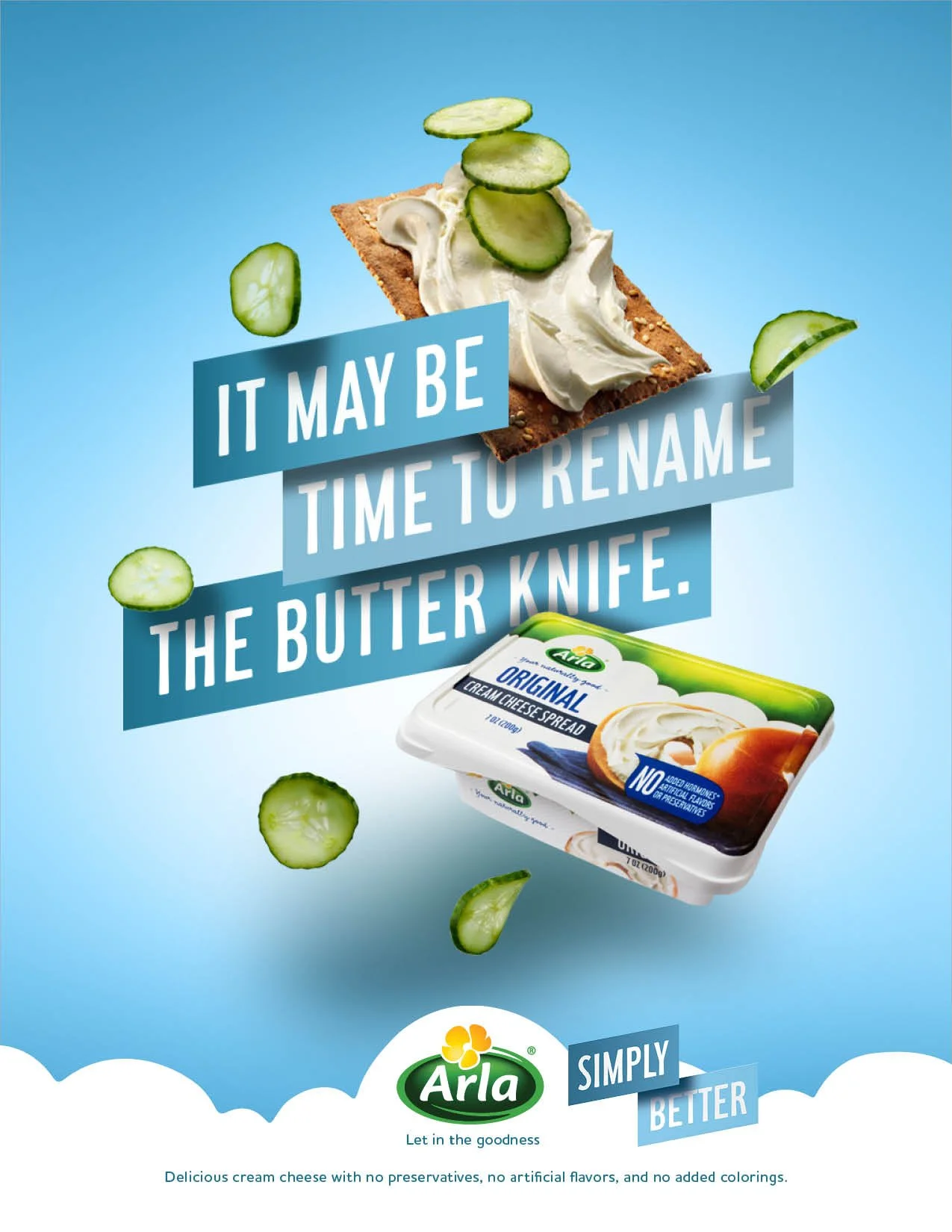 The biggest cream cheese brand in the world is Philadelphia. They have the whole market cornered. They also have additives. Based out of Denmark, Arla prides itself on cream (and other) cheese made sustainably, simply, and without additives. The problem was not a lot of people knew it. As they entered the U.S., they wanted to make sure people knew 1) They make yummy cheeses 2) They do it without additives. Given what the brand makes and stands for, we thought best not to overcomplicate it.